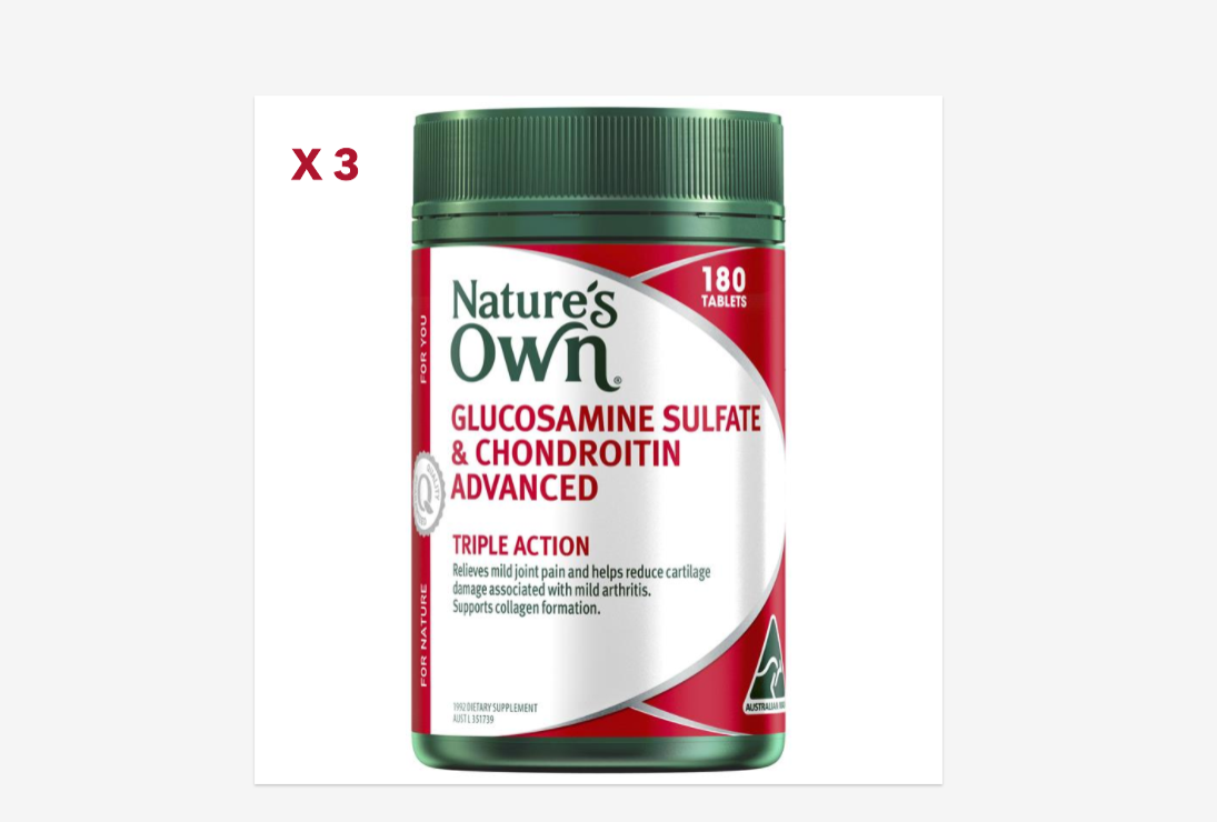 3 X Nature's Own Glucosamine Sulfate & Chondroitin Advanced 180 Tablets
