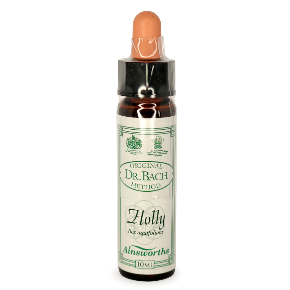 Ainsworths Holly Bach Flower is recommended for hate, jealousy & revenge. The positive potential of the flower includes love. Ainsworths guarantee that this essence is hand made in strict accordance with the methods of Dr Bach in a 1:240 “stock” strength.