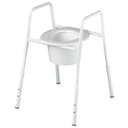 Designed to assist the patient to lower onto and rise from the toilet. Made from galvanised tubing this is an ideal commode for both domestic and institutional use.