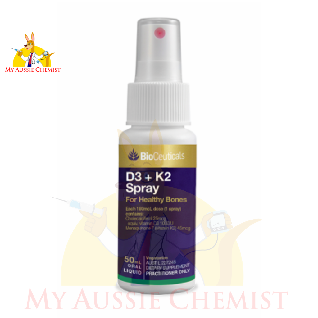 Vitamin D3 and vitamin K2 are combined in a convenient and high strength spray to assist in the maintenance of strong healthy bones, immune function and healthy blood coagulation.
