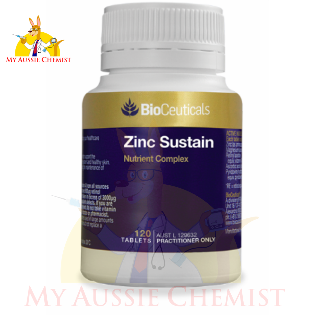 Zinc Sustain is a nutrient complex that contains zinc to support wound healing, sperm health and the maintenance of healthy prostate function. Vitamin A and zinc support healthy eye function, skin health as well healthy foetal development. Vitamin A and C plus zinc support immune system health. The addition of vitamin B6 supports energy production and both zinc and vitamin C are antioxidants that reduce free radicals in the body.