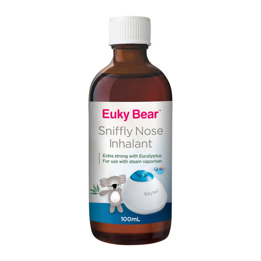 Euky Bear Inhalant is safer because it mixes readily in water and is highly water dispersible. It can be added directly to the water of any steam vaporiser so that there is no need to use the vaporiser cup. This reduces the possibility of children accessing the inhalant, reducing the risk of accidental poisoning. Steam therapy is non invasive so can be used as often as required without causing side effects such as drowsiness. Euky Bear Inhalant is also safer as it contains a bitterant to further reduce any possibility of accidental ingestion.