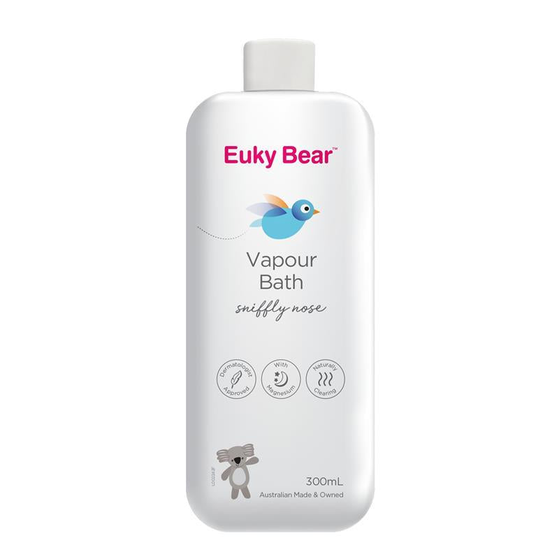 Make Bathtime Bigger, and Better – with more benefits, Euky Bear Bath products are naturally soothing, calming and clearing. Helping you to nurture your little ones at bathtime.Sniffly Nose Vapour Bath is a comforting bath soak, with naturally derived Magnesium and organic Eucalyptus to help soothe sniffles & breathe easier. Making Bathtime Bigger, and Better - with more benefits, Euky Bear bath & body products are naturally soothing, calming and clearing. Helping you to nurture your little ones at bathtime.