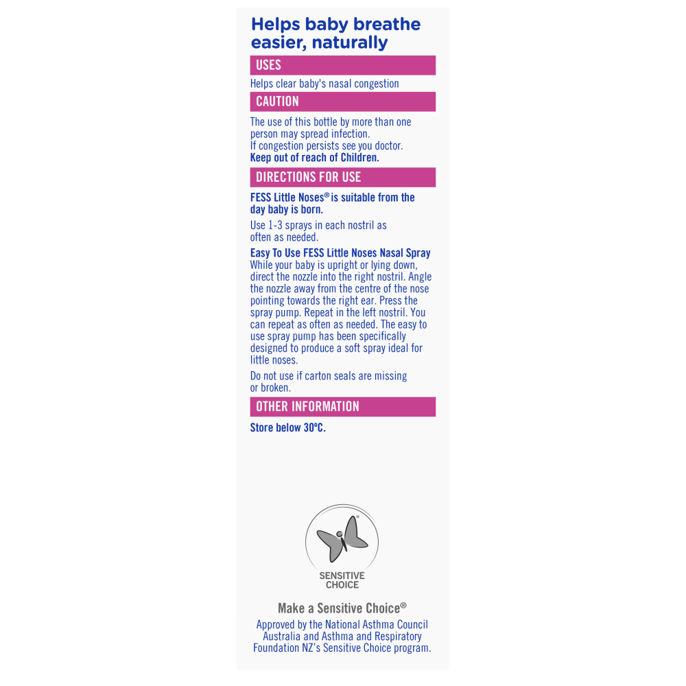 Fess Little Noses Saline Nasal Spray 15mL Relieve Blocked Noses 0-2 Years