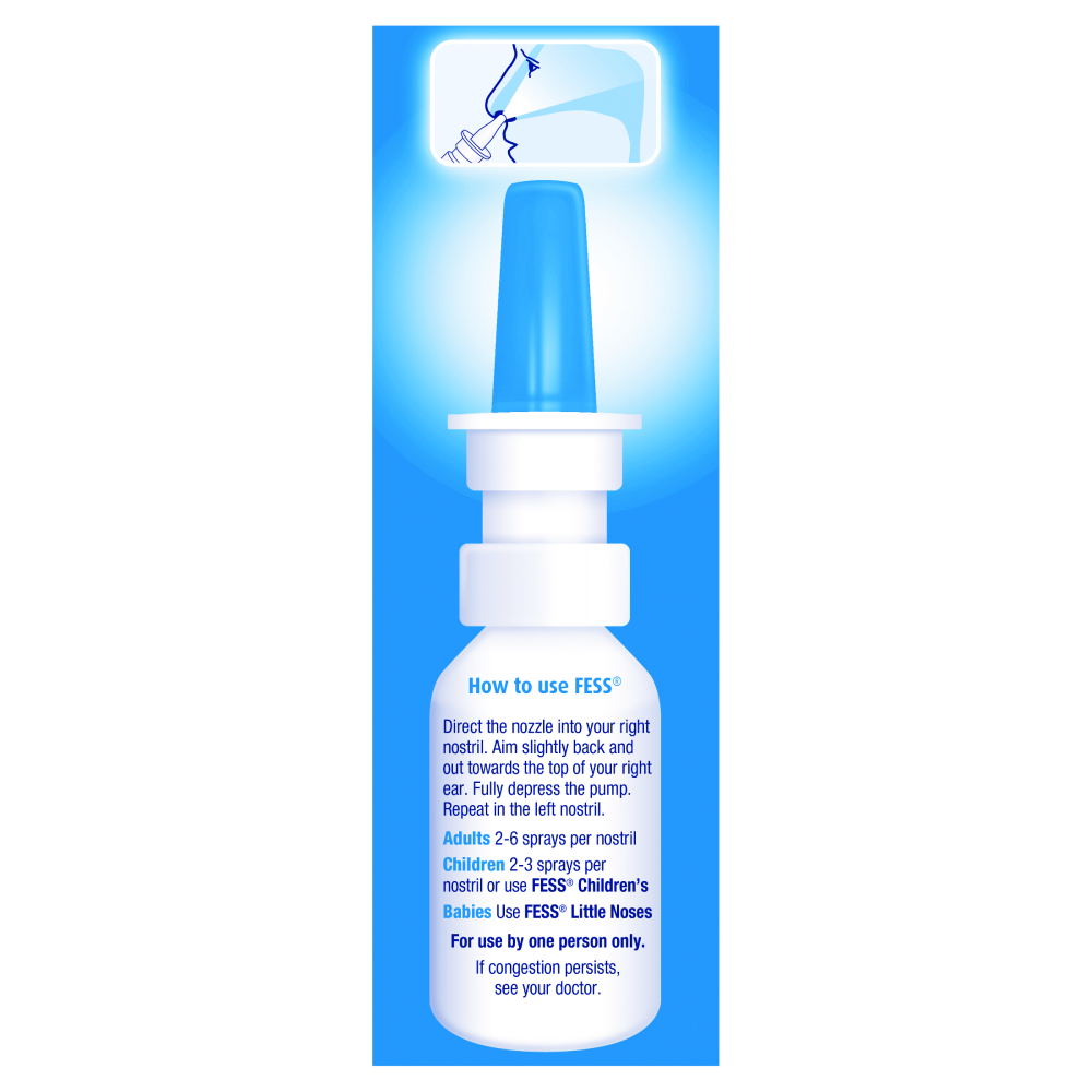 Children: 2 to 3 sprays per nostril or use Fess Children’s.