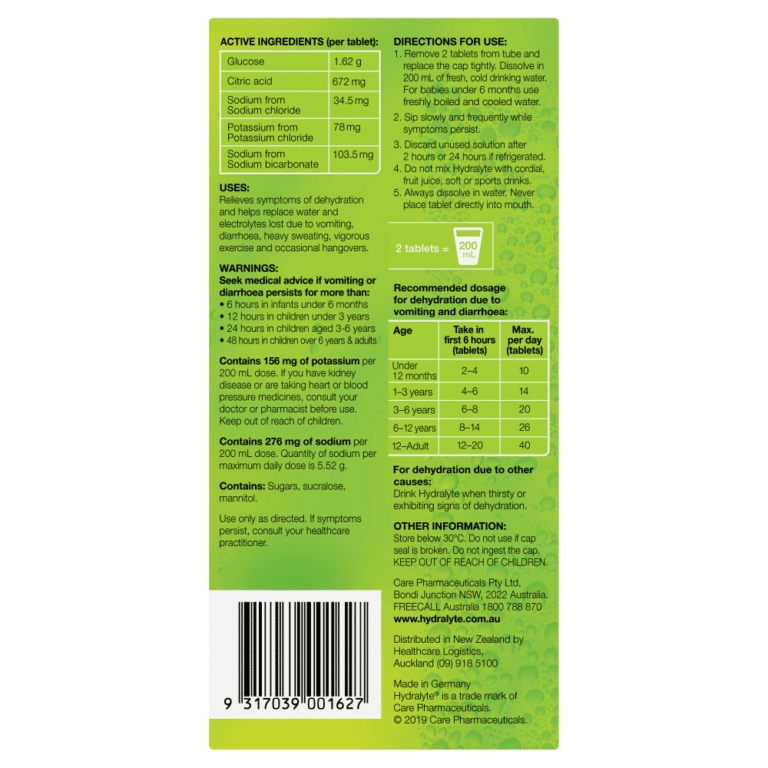 Hydralyte Electrolyte Effervescent Tablets are suitable for the entire family.
