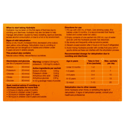 - Mix Hydralyte immediately before required.