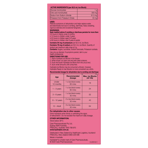 Hydralyte Watermelon Burst Flavoured Electrolyte Ice Blocks 16 Pack