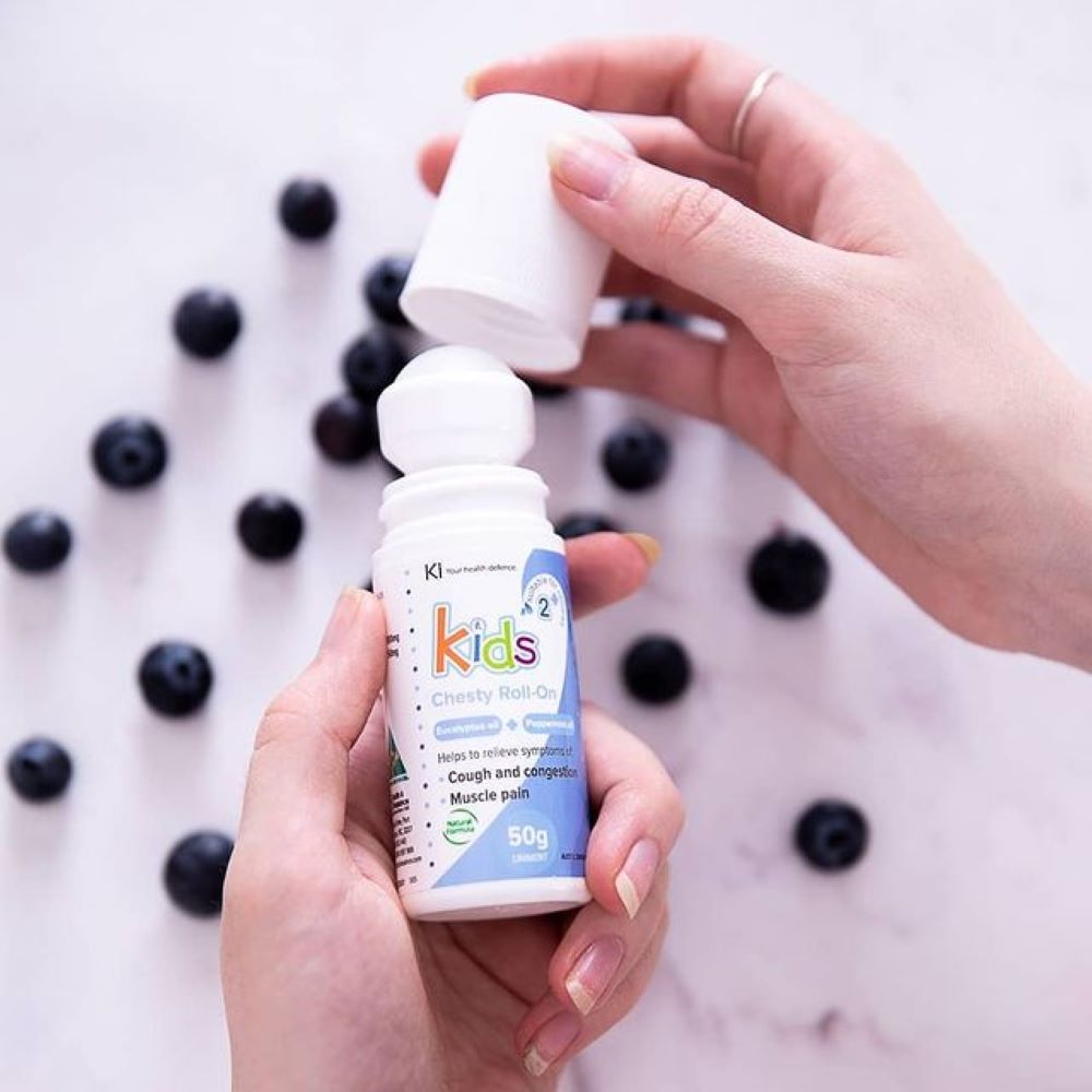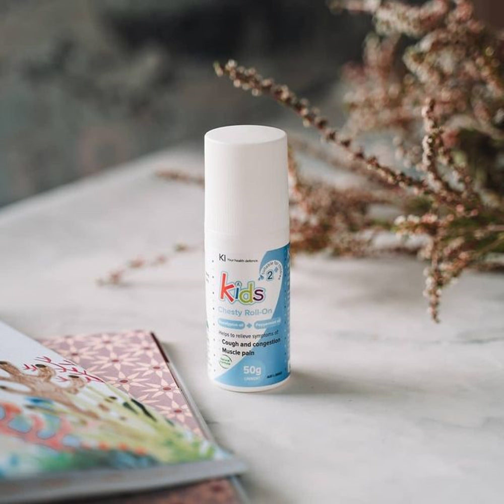 Ki Kids Chesty Roll On contains a combination of Eucalyptus and Peppermint oil which are traditionally used in Chinese Medicine to help relieve cough, congestion and muscle aches.