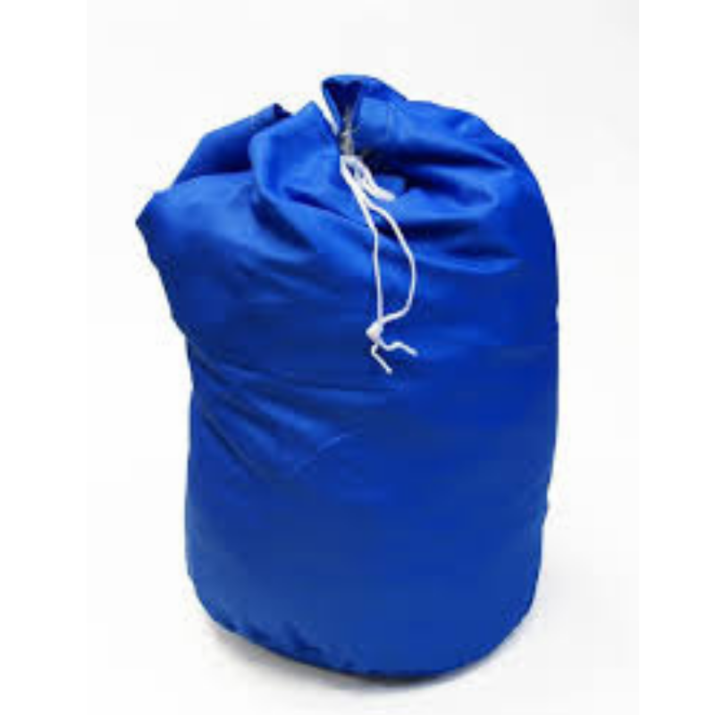 Commercial high quality laundry bag/carry-sack/linen bag in flat weave polyester cloth for carrying or storing large quantities of laundry. Ideal for professional use or university. Folds flat.