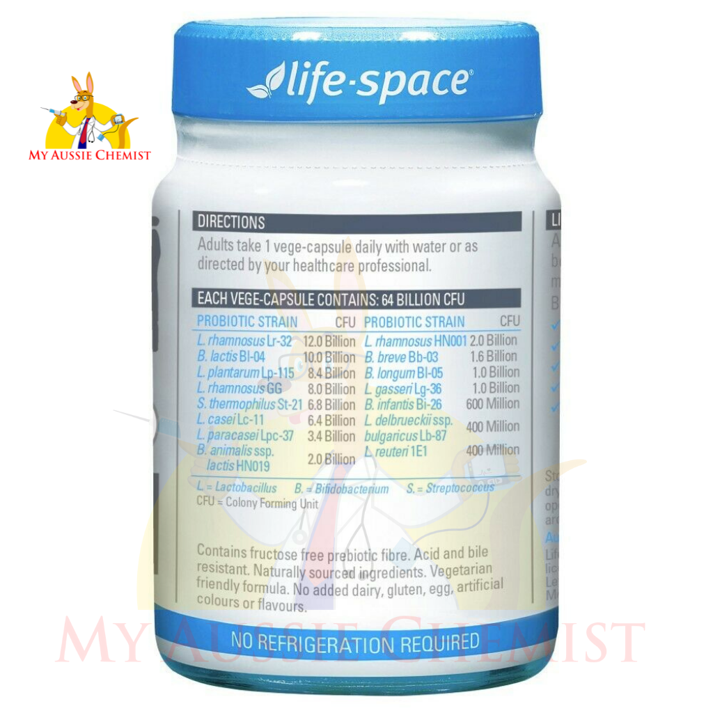 Life-Space Double Strength Probiotic 30 Vege Capsules Fridge Free 64 Billion CFU