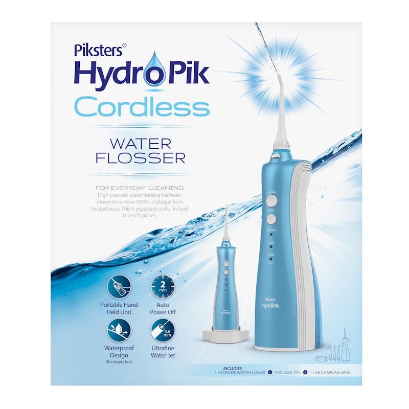 Piksters® Hydropik® Water Flosser is a powerful cordless water flosser. Water flossing has been shown to remove 99.9% of plaque from treated areas. This is especially useful in hard to reach places. Piksters® HydroPik® Water Flosser delivers: Cordless Convenience • Freedom of movement. • No messy cords when using. • Use anywhere in the bathroom, including the shower. • Large comfort grip. • Charges with USB. Effective Plaque Removal • Fast and efficient, easy to use. • 3 Operating Modes: Normal, Soft and Pulse. • No damage or pain to the gums as can occur with flossing. • Cleaning between teeth where brushing cannot reach results in more plaque removal than manual brushing alone. Improved Gum Health • Helps remove plaque. • Removal of food debris may freshen your breath. • A water flosser will get into areas that are hard to reach with a toothbrush. • Piksters® HydroPik® water flosser cleans deep between teeth and below the gumline to remove food and bacteria. • The pulsations (Pulse Mode) help dislodge food particles caught between the teeth. Superior Cleaning Around Bridges, Implants, Braces, Crowns, Wires & Splints • Cleaning bridges, implants & orthodontic braces etc with a Piksters® HydroPik® is a lot easier than flossing, especially if a floss threader is required. • Effective toothbrushing is a lot more difficult around braces, brackets and wires. • Piksters® HydroPik® eliminates snagging of floss or toothbrush bristles.