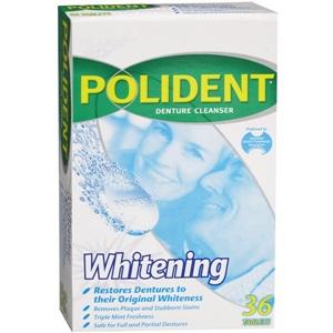 Polident Fresh Active denture cleansing tablets kill 99.9% of bacteria and leave dentures feeling fresh. The tablets contain a powerful anti-bacterial cleansing system that reduces plaque build-up and stubborn stains. Polident Fresh Active denture cleansing tablets can clean dentures effectively in just 3 minutes. For those who prefer to give their dentures a regular longer soak, they are safe for overnight usage.