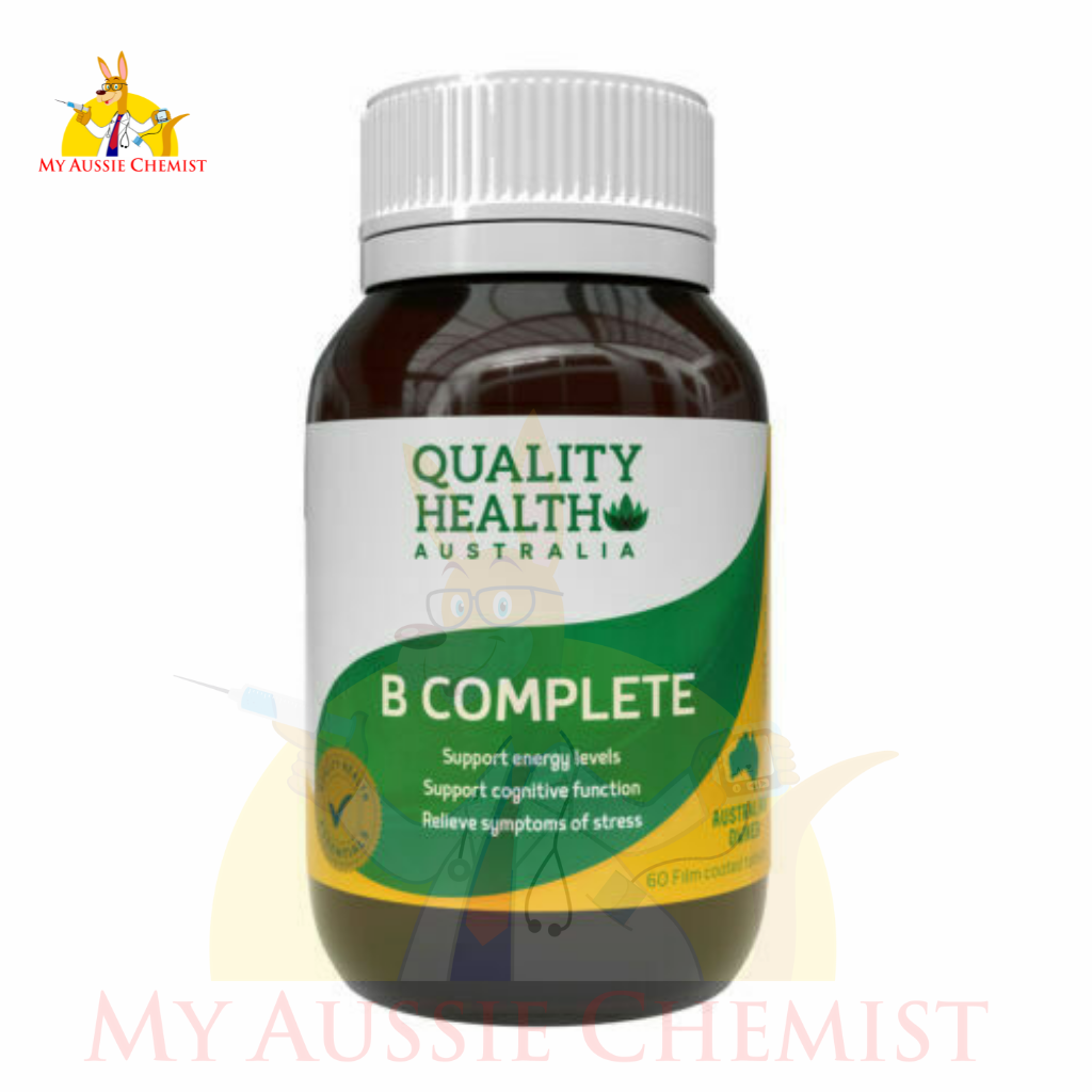 Quality Health B Complete 60s is formulated with the complete set of B vitamins (including the activated vitamin B12 to aid body asorbtion) It is designed to support energy levels, Support cognitive function and Maintain healthy Immune system function whilst also support stress levels in the body and decrease symptoms of stress.
