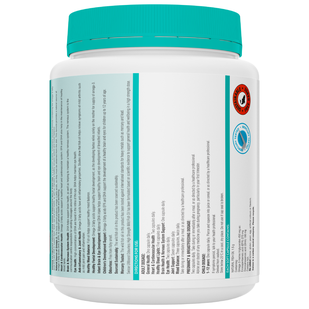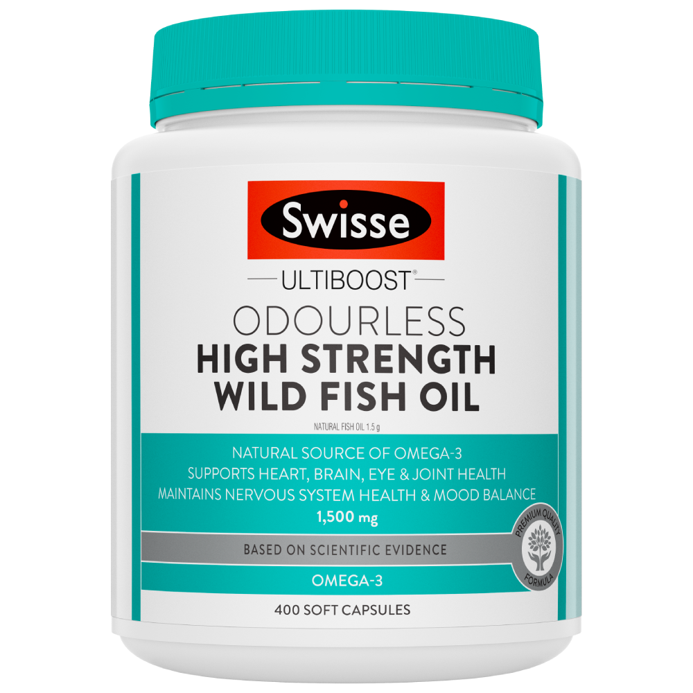 Swisse Ultiboost Odourless High Strength Wild Fish Oil is a premium quality, sustainably sourced formula containing the omega-3 fatty acids EPA and DHA to support heart, brain, eye and joint health, as well as assist a healthy nervous system and mood balance.