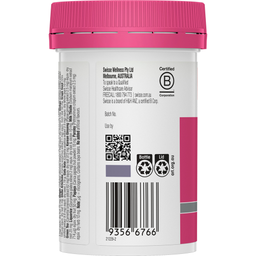 Swisse Women’s Ultivite is a premium quality formula containing 50 vitamins, minerals, antioxidants and herbs tailored for women to help provide support during stress and assist with energy production, stamina and vitality. Product Benefits:
