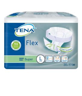 * The most innovative cost-saving breakthrough product available for heavy bladder weakness * TENA Flex is applied in either sitting, standing or lying positions and has Velcro-like waistband to allow easy application by either wearer or carer * TENA Flex now incorporates a unique 100% breathable backsheet that lets the air, not the fluid, circulate * This helps to maintain healthier skin and because of the cloth-like covering, both comfort and dignity are greatly improved * Furthermore, because it's all-in-one, there's no extra fixation required * TENA Flex with FeelDry offers outstanding dryness to the user and ease of use to the carer, providing the highest quality of care. * More comfortable, discreet solution * Easier to fit and work with * Convenient hook-in-line fastening * Colour coded for correct selection * Cost-saving future shape of continence care * Latex free * Waist Size 83cm - 120cm * Total Capacity 2530ml * Working Capacity 1518ml * Colour Green