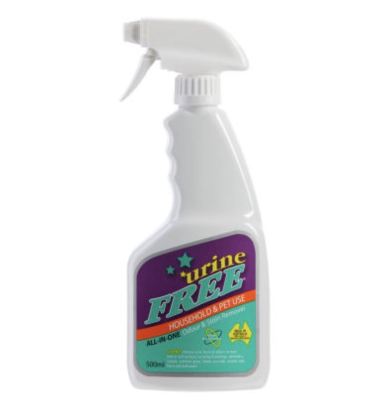 urineFREE 750ml Litre Bottle for larger & more stubborn urine stains and odours. With a trigger sprayer and secure cap for leak-free transit.